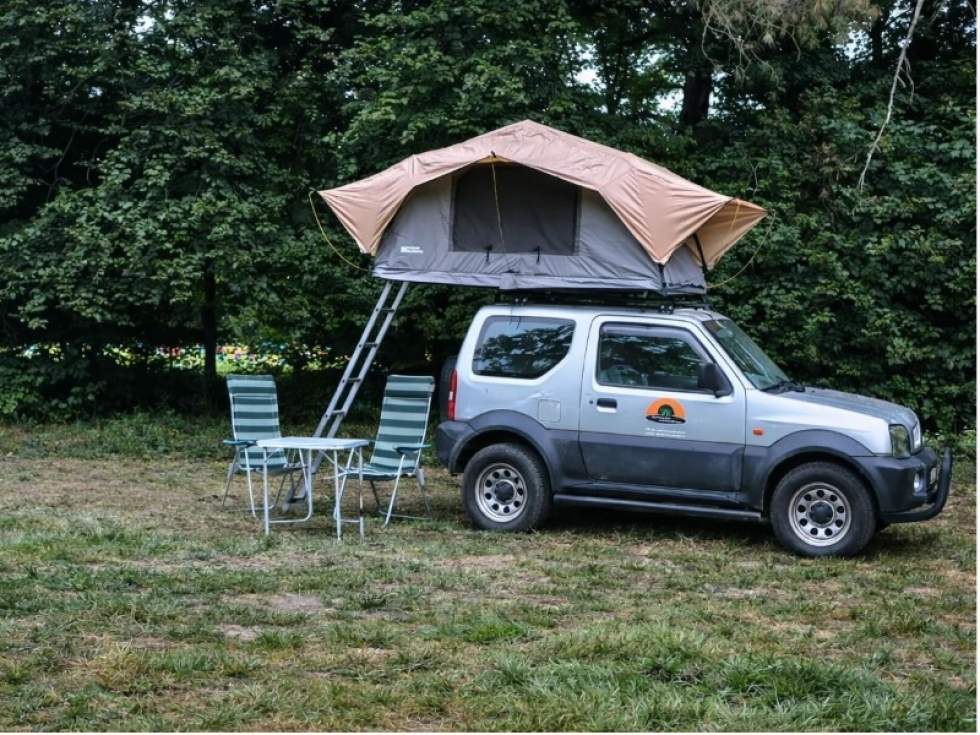 Suzuki Jimny’s kunnen met daktent met 2 inzittenden gehuurd worden en je kunt gaan kamperen op een camping in een straal van 200 km rondom Bunde (waar de auto’s gestald staan). In voorkomende gevallen zijn we dan in staat je hulp te bieden mocht je hulp nodig hebben.